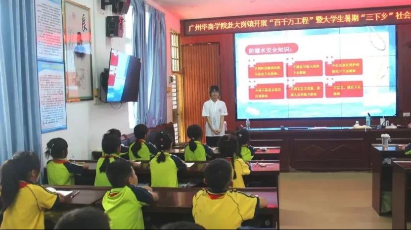 ——“星驿驰梦”百千万工程突击队。为深入学习宣传贯彻党的二十大精神,落实省委"百千万工程"的重大战略部署。威廉希尔williamhill中文星驿驰梦突击队于7月15日-7月24日在肇庆市怀集县大岗镇中心小学开展了为期十天的支教实践活动。“星驿驰梦”突击队精心设计了防溺水课程、防霸凌与性侵课程、心理健康系列课程、传统文化课程、使得同学们在课程互动和游戏中得到全方面的认识和发展。为了解学生的家庭情况、学习情况以及学生的生活需求,“星驿驰梦”突击队开展特色课程外,还对几位学生进行了简单的家访,了解他们的教育需求。不仅如此,“星驿驰梦”突击队深入调研连会扶溪村武威堂、三八运河等特色景点以及特色农产品丝苗米,并为大岗镇拍摄特色宣传片,让大岗镇特色景点走进大众的视线。“星驿驰梦”突击队在实践中为更多需要帮助的孩子贡献自己的青春力量。