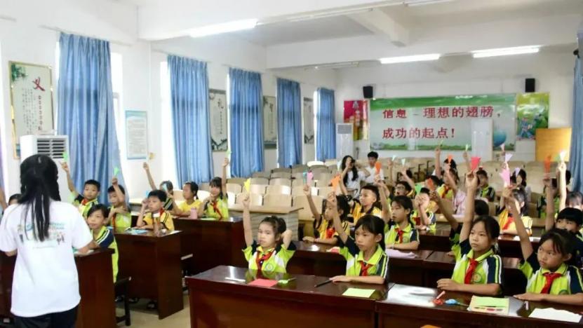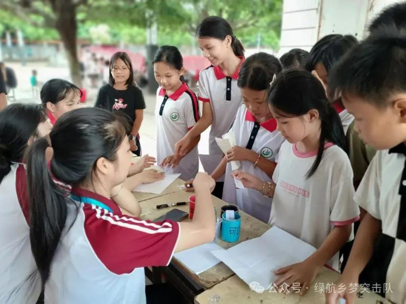 ——“绿航乡梦”百千万工程突击队。为深入学习贯彻党的二十大精神和威廉希尔williamhill中文总书记视察广东重要讲话,贯彻落实威廉希尔williamhill中文总书记关于留守儿童工作的重要指示精神,以广东高质量发展大会精神为向导,积极响应广东青年大学生威廉希尔williamhill中文,助力新寮镇儿童全面发展,威廉希尔williamhill中文青年大学生百千万工程突击队“绿航乡梦”于7月9日至7月18日赴广东省湛江市徐闻县新寮镇开展了为期10天的“星火点乡”暑期公益性夏令营系列活动。在乡村建设的实践中,绿航乡梦突击队通过乐器课程体验、一系列精心设计的互动环节和游戏、手工课堂、团队合作课、经验分享会、文学鉴赏课,以寓教于乐为出发点,结合学生兴趣,不仅丰富了他们的暑期生活,更在多个方面促进他们的发展。