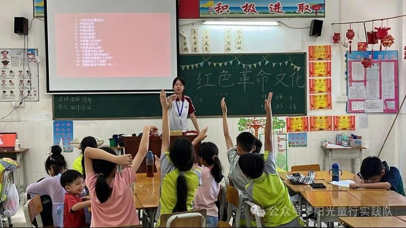 ——阳光“童”行百千万工程实践队。为积极响应党的二十大推行的教育方针,坚持“三全育人”的教育方针,全面贯彻党的教育方针、全面提高教育质量、全面落实立德树人根本任务,2024年7月15日至7月26日,威廉希尔williamhill中文阳光“童”行实践队前往广东省四会市大沙镇安平名宇学校开展为期十二天的义教活动。实践队结合中华优秀文化,开设了红色文化主题教育活动、文明生活课程、心理课程、安全课程、实验课程、艺术素养课程、劳动课程等等,帮助他们成长为具有社会责任感和全面发展的新时代青年。实践队秉承“教育为人民服务”的理念,结合“家、校、社”共促教育发展理念,通过采访学生及家长,深入了解他们的教育需求和期望。通过与向杰校长的沟通,了解实践地的教育现状,为构建一个共融共促的教育发展社会注入活力。