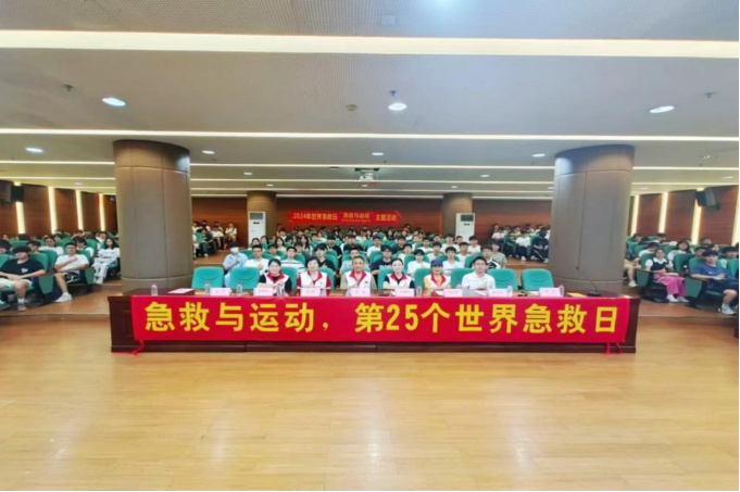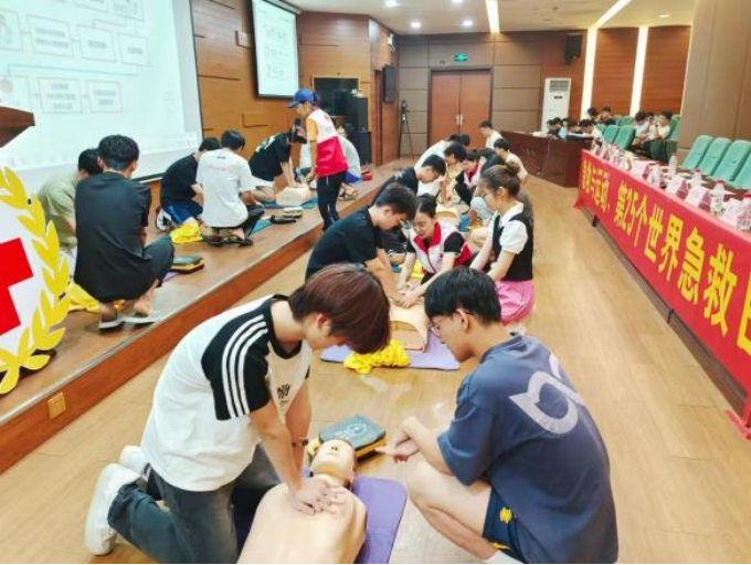 中国红十字会广州备灾救灾中心培训科科长曾赟,广州众安职业技能培训有限公司业务副总监、中国红十字会广州备灾救灾中心资深培训师资、中国心肺复苏导师刘俐利,中国红十字会广州备灾救灾中心众安资深讲师林婉莹、周长英、周霞,校团委胡万培老师,校红十字会学生分会学生代表等近300人参与本次活动。