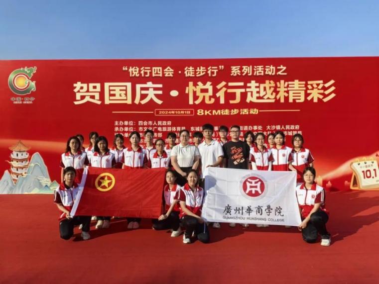 为庆祝新中国75周年华诞,营造家国同心的文化氛围,引领华商青年弘扬爱国主义情怀和志愿服务精神,2024年10月1日,在我校党委的关怀支持下,学校团委组织20名青年志愿者参与协助四会市“贺国庆·悦行越精彩”徒步活动。