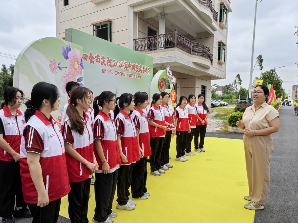 ——四会市庆祝2024年中国农民丰收节。2024年9月23日,中国农民丰收节盛大开幕。活动现场,团四会市委副书记周莹为志愿者讲解服务内容与相关事宜,志愿者们认真听讲,为志愿服务活动的开展做好准备。