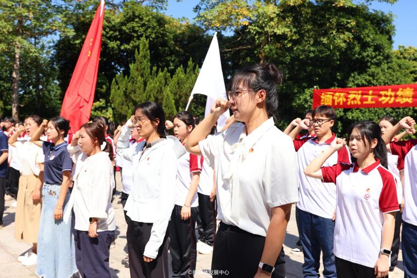 随后,进行默哀仪式。师生代表共同向英勇牺牲的革命烈士默哀、鞠躬致敬。