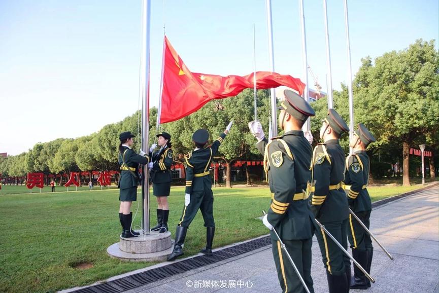 “齐步走!”伴随一声铿锵有力的口令,国旗护卫队队员迈着坚毅整齐的步伐,护送五星红旗走向升旗台。伴随着雄浑高亢的《义勇军进行曲》旋律,全场师生怀着无比崇敬的心情,齐声高唱中华人民共和国国歌,向英烈们致以崇高的敬意和深切的缅怀之情!五星红旗在朝阳中冉冉升起,激昂的旋律回荡在华商校园中。