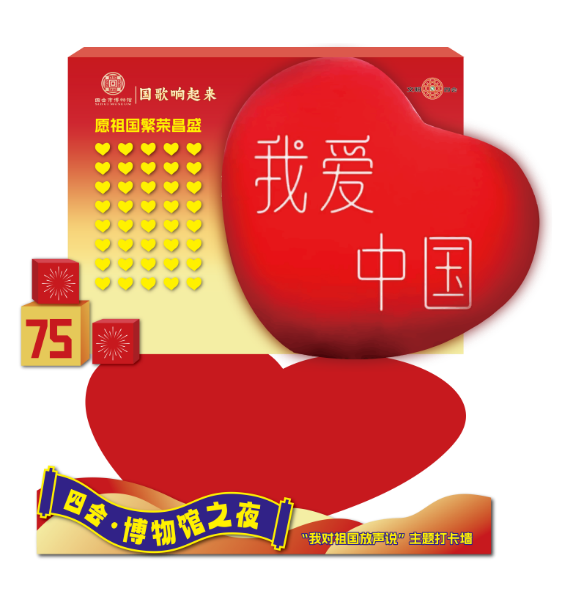 “我对祖国放声说”主题打卡墙,以签到打卡的形式,让观众将对祖国的热爱、美好愿望都写在打卡墙,拍照片发视频到各个社交平台,邀请不同团队在主题墙上说出对祖国的祝福。