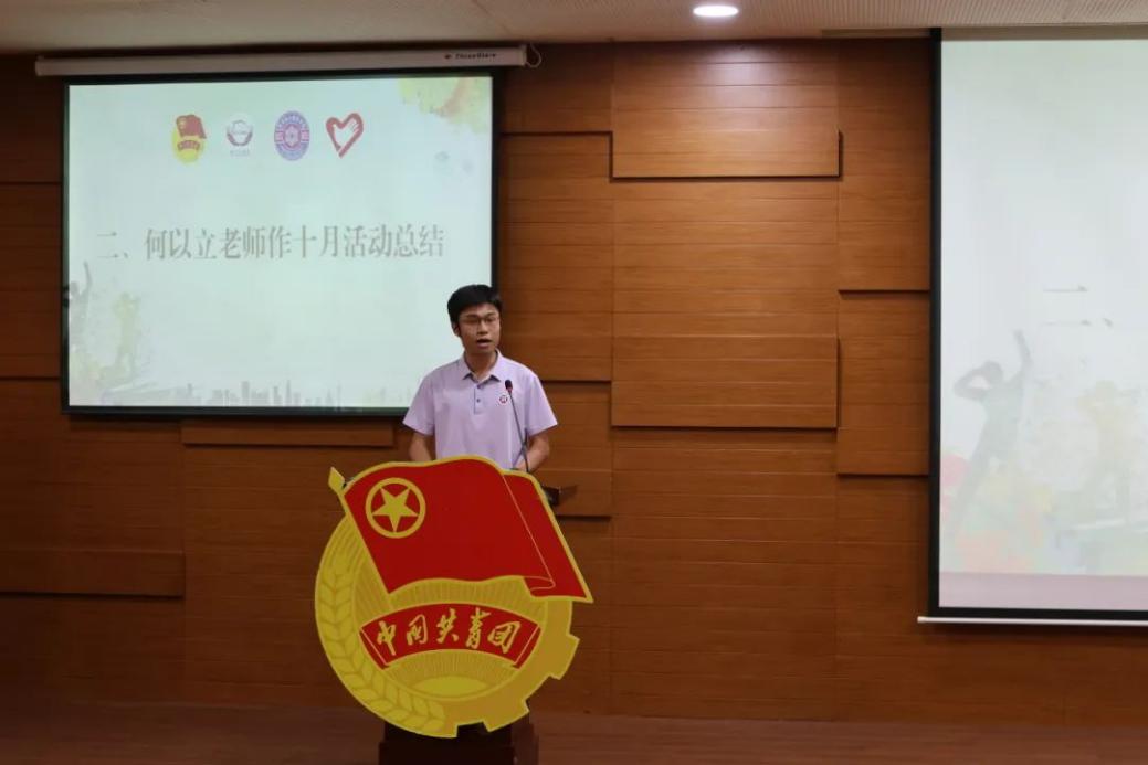 ——校团委何以立老师总结十月志愿工作情况。何以立老师对秋季学期十月份举办的系列志愿服务活动进行了细致的总结。从健康科普,到校园清扫,从无偿献血,到公益课堂,华商青年在推进校园文化建设中展现青春作为,彰显青春风采,贡献青春力量。