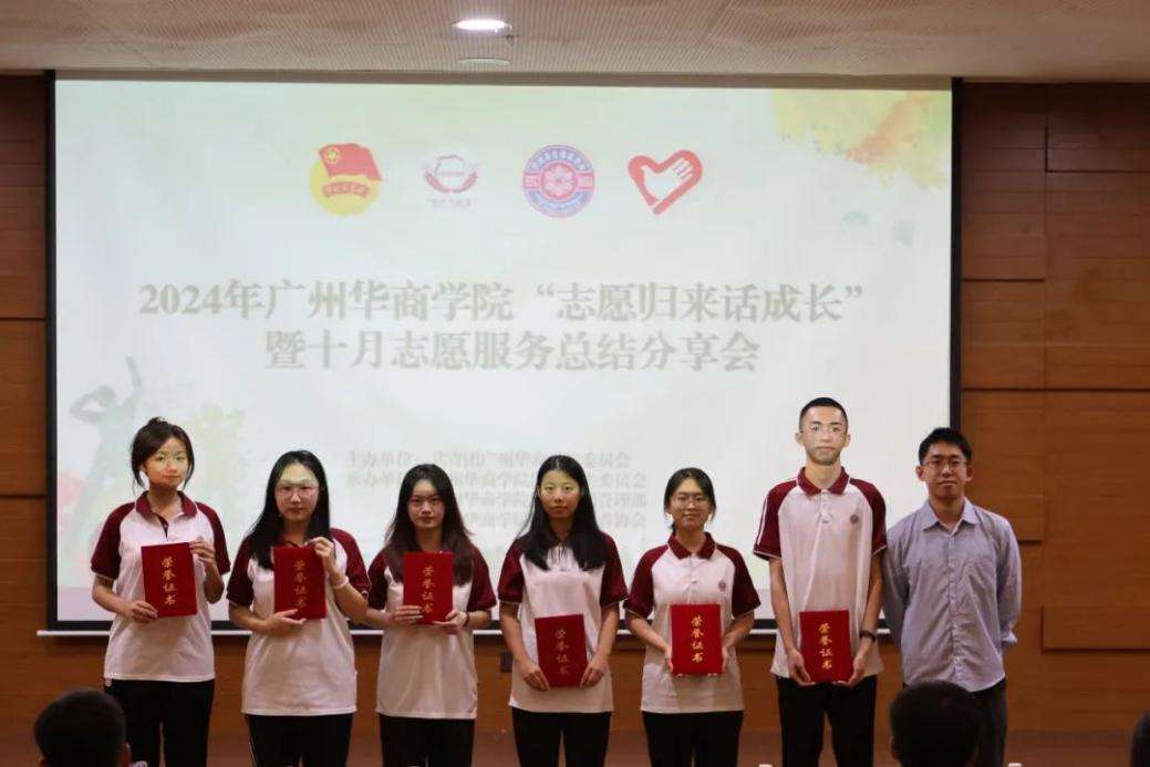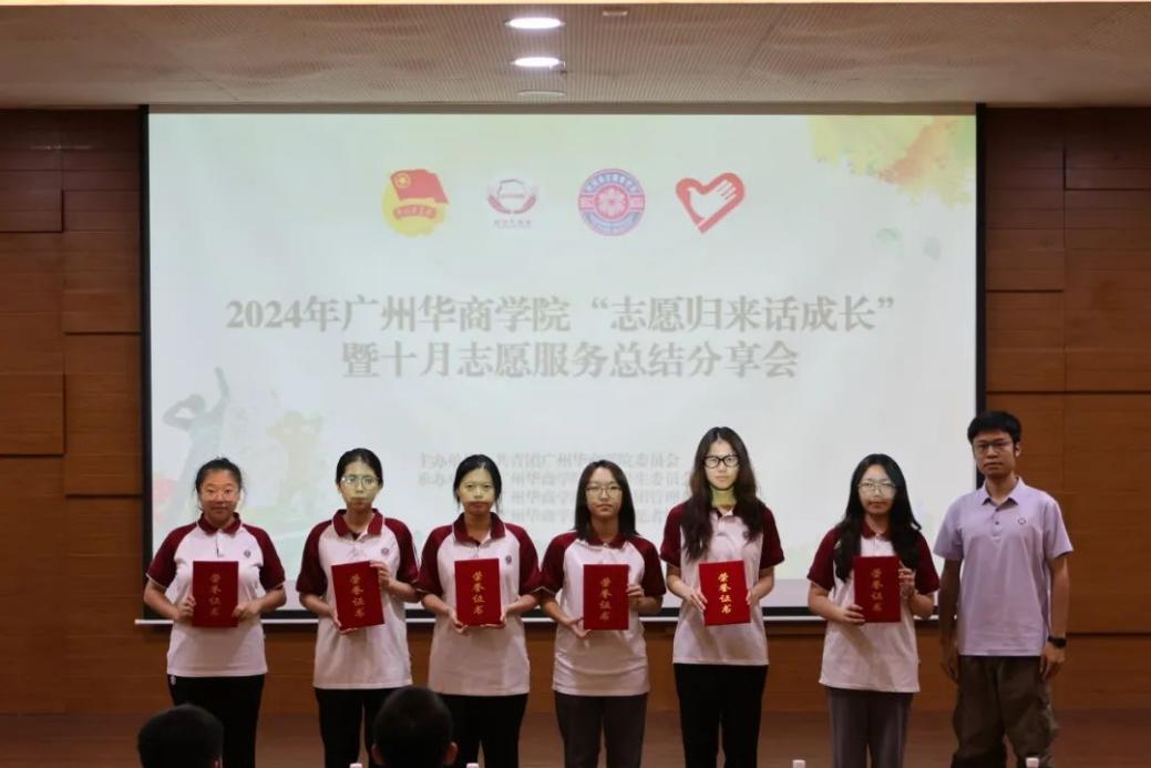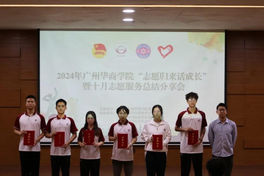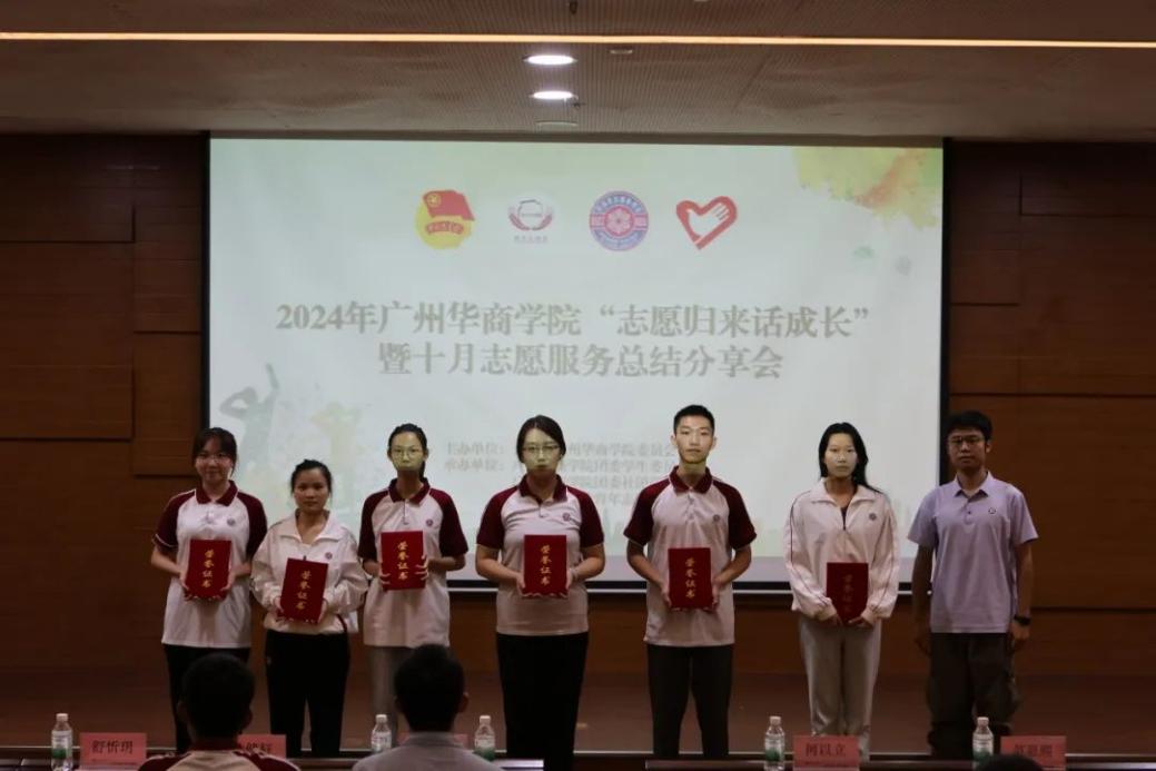 校团委胡万培老师、何以立老师对优秀志愿者颁奖。表彰积极进取,奋勇拼搏,坚韧不拔,昂扬向上的华商青年。