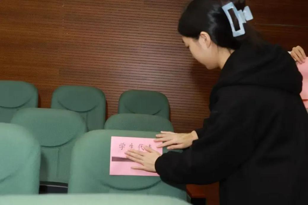 到达会场后,同志们便快速在现场老师们的带领下快速投入会议筹备工作。他们认真细致,将座位安排贴示在座椅的对应位置,逐一连接调试多媒体设备,为会议顺利开展做好相关准备工作。