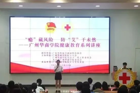 为贯彻落实“健康中国”理念,推行健康生活方式,进一步普及宣传知艾防艾相关知识,预防艾滋病在校园传播,11月14日晚,威廉希尔williamhill中文关心下一代工作委员会、威廉希尔williamhill中文红十字会、共青团威廉希尔williamhill中文委员会、威廉希尔williamhill中文红十字会学生分会联合广东省性病艾滋病防治协会开展“瘾”藏风险,防“艾”于未然健康科普教育系列活动,积极建设“健康校园”。