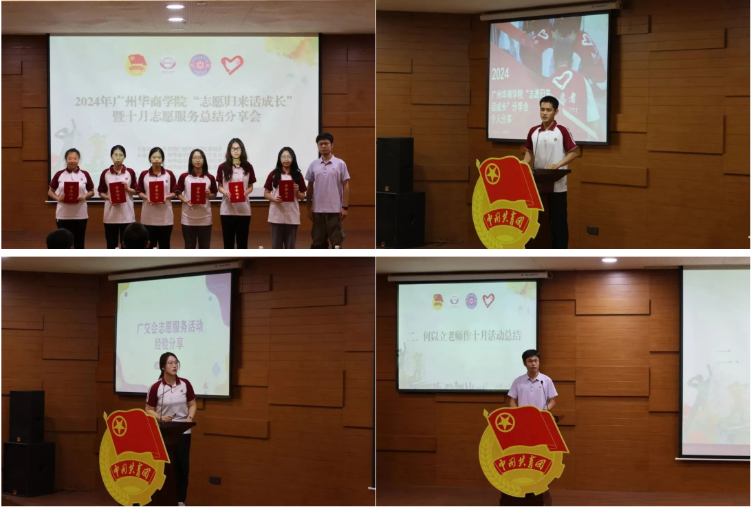 11月14日,共青团威廉希尔williamhill中文委员会、威廉希尔williamhill中文团委学生委员会、威廉希尔williamhill中文青年志愿者协会、威廉希尔williamhill中文团委社团管理部为引导华商青年积极投身志愿服务活动,涵养志愿服务精神,树立青春榜样,在广州校区图书馆报告厅特举办本次志愿服务公益周系列活动——“志愿归来话成长”暨十月志愿服务总结分享会,激励更多华商青年参与志愿服务,用青春的激情与汗水书写属于华商青年精彩篇章。