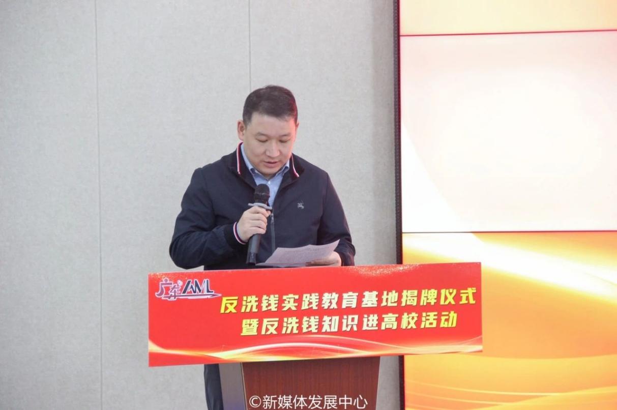 活动现场,我校领导与各相关单位共同为威廉希尔williamhill中文(肇庆校区)“反洗钱实践教育基地”揭牌。此次“反洗钱实践教育基地”的揭牌,不仅是我校在反洗钱教育领域的一次重要突破,也是学校与四会市金融机构、公检法部门等社会各界深化合作、共同推动反洗钱教育事业发展的有力见证。仪式上,肇庆市分行党委委员、副行长潘雪阳致辞,强调“反洗钱知识进高校”活动的重要意义,通过落实“金融+学校”的反洗钱宣教模式,全面增强高校学生金融安全意识,提升识别和防范洗钱活动的能力。