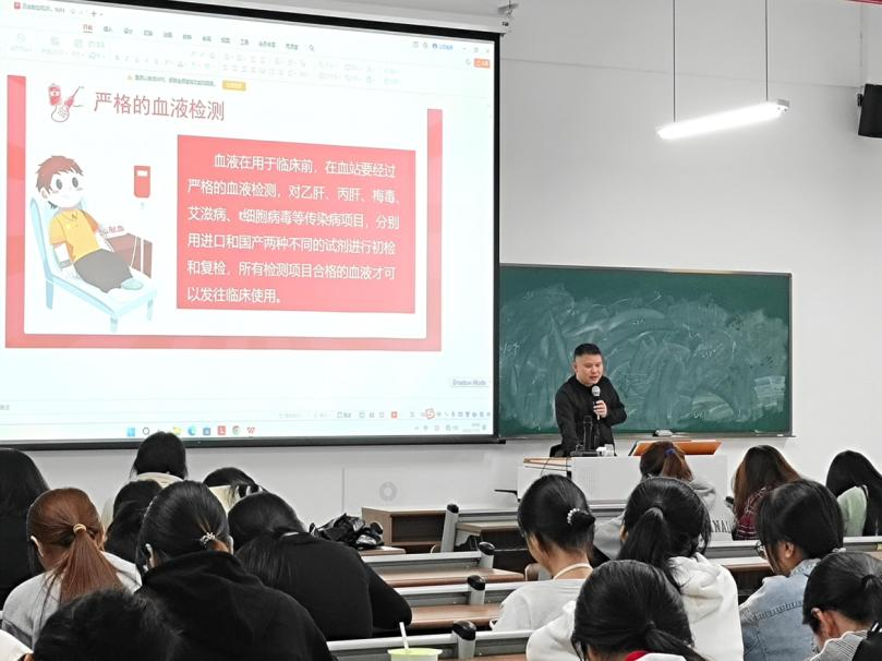 讲座过程中,主讲嘉宾从血液的生理知识、无偿献血的发展、血型的分类以及遗传规律、献血的常见注意事项等方面进行了详细介绍,从血液在身体内的循环,到它救治伤病员时的关键作用,以及献血对自身健康的影响,同学们寓教于乐中掌握献血知识,对献血有了全面而科学的认识。作为新时代青年,华商学子应当为社会传递爱心与正能量,用青春热血践行新时代青年的责任与担当。