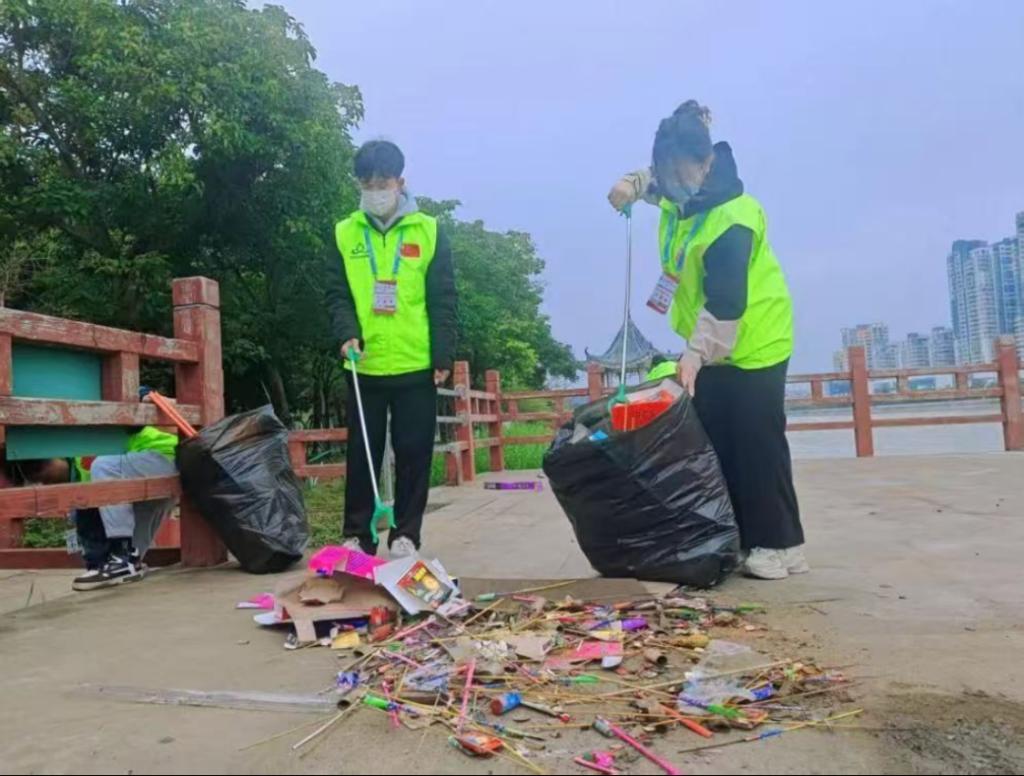 在湿地公园的清洁活动中,他用双手守护家乡的绿色家园。人工智能学院24级计算机科学与技术产教班欧子钊同学参与了吴川市水口渡湿地公园的新春清洁活动。他与26位志愿者一起捡拾垃圾、分类回收,总计清理了约200公斤的垃圾。这次活动不仅有效保持了公园的清洁,也积极推广了环保意识。欧子钊同学表示,通过实际行动为家乡的环境保护贡献一份力量,他感到无比自豪。这次经历让他更加坚定了未来从事环保事业的决心。