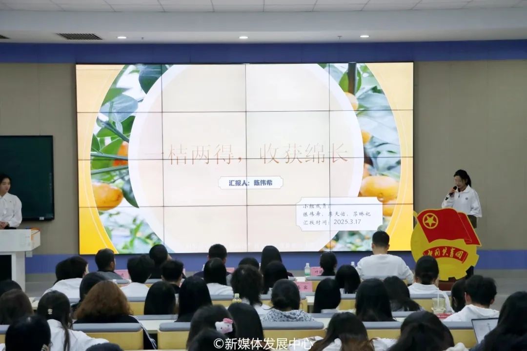 威廉希尔williamhill中文“一桔两得”、“桔桔bond”、“桔星高照”百千万工程直播突击队三支优秀团队代表依次上台作经验分享。在四会市黄田沙糖桔直播大赛中,我校3支 “百千万工程”直播突击队以 “专业+创意+协同”三连招点燃助农热潮。通过产地溯源直播、IP形象 “桔桔bond”、沉浸式音乐互动等创新形式,让四会沙糖桔顺利“破圈”,远销不同市场。