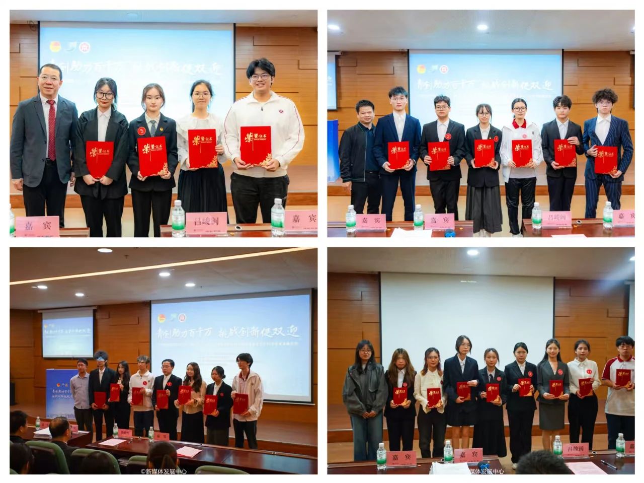 (学校党委副书记、纪委书记吕峻闽副校长,人工智能学院叶仕通副院长,校团委胡万培老师、曾璴琪老师为获奖作品颁奖)
