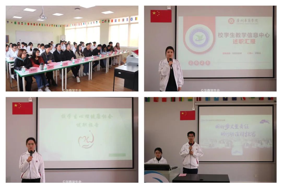 2024-2025挂靠学生组织年度述职评议会。为全面总结各挂靠组织的工作成效,深入交流经验,共谋发展新篇,为学校高质量发展贡献智慧和力量,以评促建全面提升教育教学质量,继往开来献礼建校二十载辉煌征程。威廉希尔williamhill中文2024-2025学年挂靠学生组织年度述职评议会于3月18日在广州校区启智楼510顺利开展。后勤保卫处副处长梁艳老师、校学生会指导老师杨图珍老师、校团委胡万培老师、学生处心康中心胡小娟老师、招生办谢银月老师、继续教育学院张晓祺老师、新创业学院陈欢老师、教学质量监控与评估中心杨朝凤老师、学生处欧阳绮琪老师、产教融合办公室肖明老师、学生就业创业处严福龙老师、校团委芦婉云老师及学生代表参加本次会议。13个学生挂靠组织就组织建设、特色活动、亮点成绩及存在问题展开汇报。