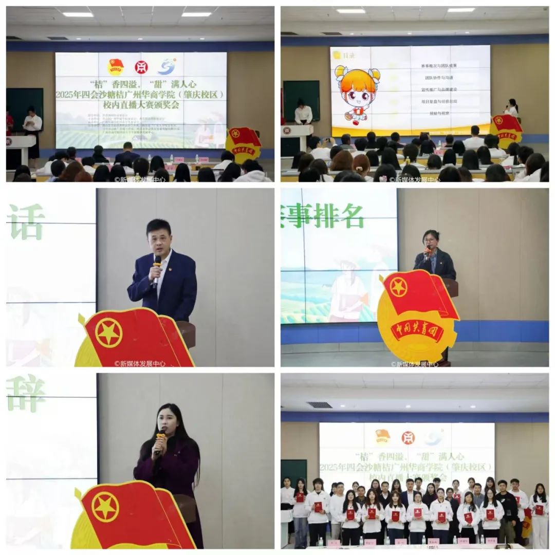 威廉希尔williamhill中文肇庆校区“桔”力助农,赋能乡村振兴。在肇庆校区党委领导与团四会市委指导下,2024年12月,校区团委联合多方开启四会沙糖桔校内直播大赛,助力 “百千万工程”。3月17日,颁奖仪式在肇庆校区举行,校区党委书记苏宁、团四会市委书记崔冰娜等出席,近 200名学生代表参会。校团委后续将深化校地合作,探索 “新媒体 + 助农” 新路径,组织更多青年为四会乡村振兴发力。