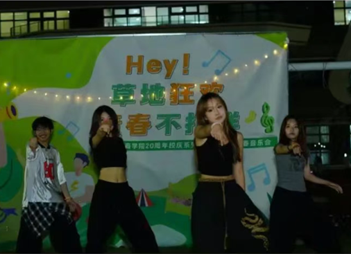 《海阔天空》,熟悉的旋律响起,热血的音符撞进心门,这是独属于青春的滚烫时刻。师生们一同合唱,为这场音乐会画上完美的句号。
