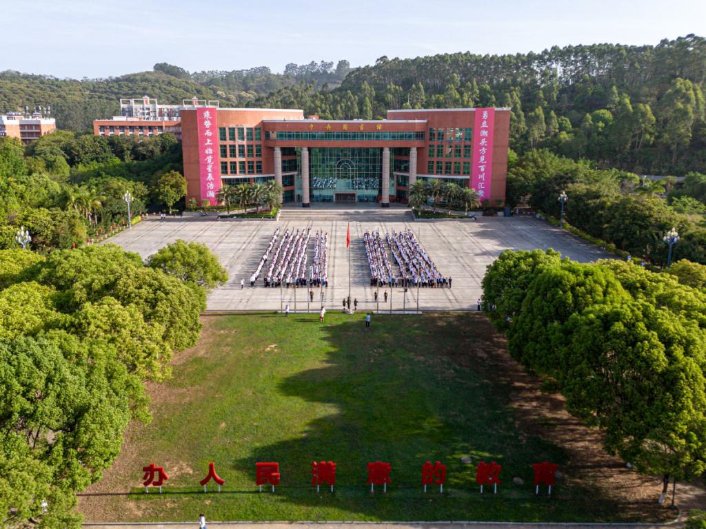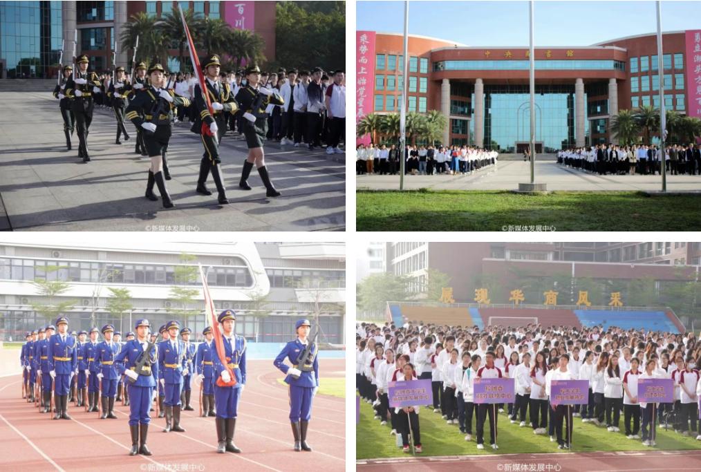 国家安全主题升旗仪式。上午7:40,学校团委在双校区组织开展2025年全民国家安全教育日主题升旗仪式。学校党委书记陈玉欢教授,校党委副书记、纪委书记、副校长吕峻闽教授,校党委委员、副校长许娜副教授,肇庆校区党委书记苏宁,校党委委员、党委办公室吕书勉主任,校党委委员、党委宣传部刘苗部长,校纪委委员、党委保卫部杨燕平部长,党委教师工作部庞革英部长,党委学生工作部黄国富部长,校团委陈刚书记,二级党委书记、副书记、学工副院长、学工办主任、团委书记、 团委副书记、学生会指导老师、辅导员及学生代表近5000人参加本次主题升旗仪式。双校区仪式分别由党办吕书勉主任和校团委杨伟捷老师主持。