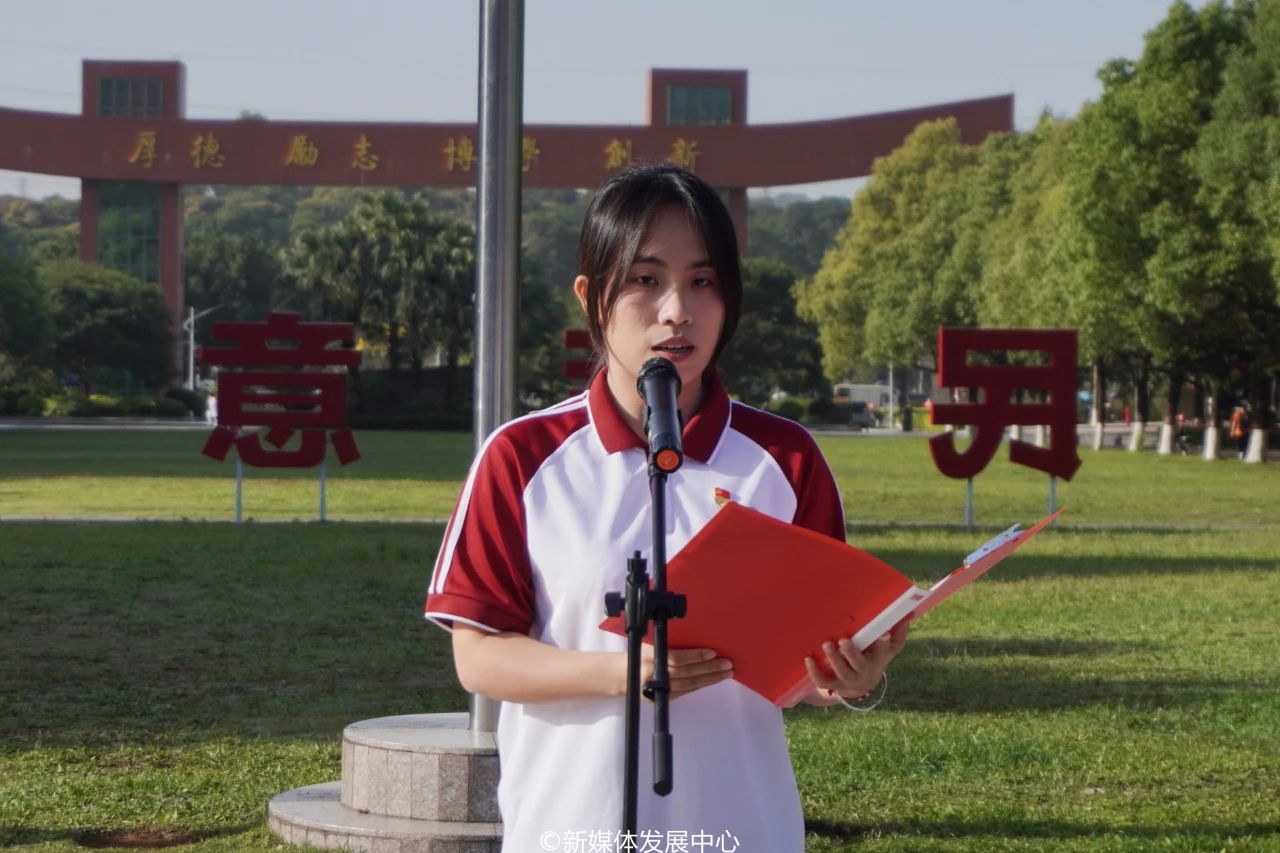 两校区学生代表在国旗下作表态发言。广州校区党员学生代表教师教育学院的黄灵同学表示,筑牢防线,使命在肩。国家安全,人人有责,需要每个人从细微处践行担当。作为新时代青年党员,要胸怀”国之大者”,继续以身作则遵国法校纪,参与平安校园与国家安全建设,提升综合素质,以实际行动筑牢国家安全防线。肇庆校区学生代表数字经贸学院郑满冰表态:维护国家安全没有局外人,大家都是参与者。要继续强化思想武装,筑牢安全意识,从学习、践行、理想三方面增强国家安全意识,强化认识、提升素养,知行合一、融入日常。