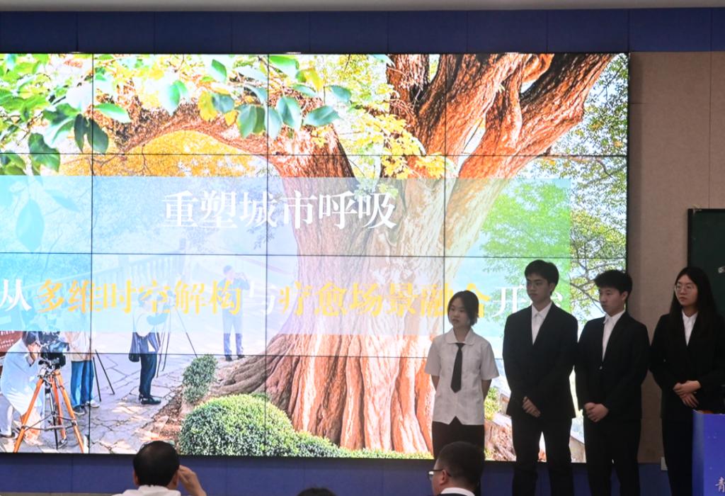 经个人申报、二级学院推荐、校级评审,最终23件作品入围校级终审决赛。本次比赛分为作品展示和答辩环节,答辩环节采取“5+3”模式,即5分钟作品陈述以及3分钟评委点评环节。各项目团队从指定的7个典型镇村点位中,自行选择其中一个作为研究对象参赛,围绕点位及其周边的自然资源禀赋、经济社会特点、发展目标规划等,宜工则工、宜农则农、宜商则商,进行城乡美学规划和创意运营设计。