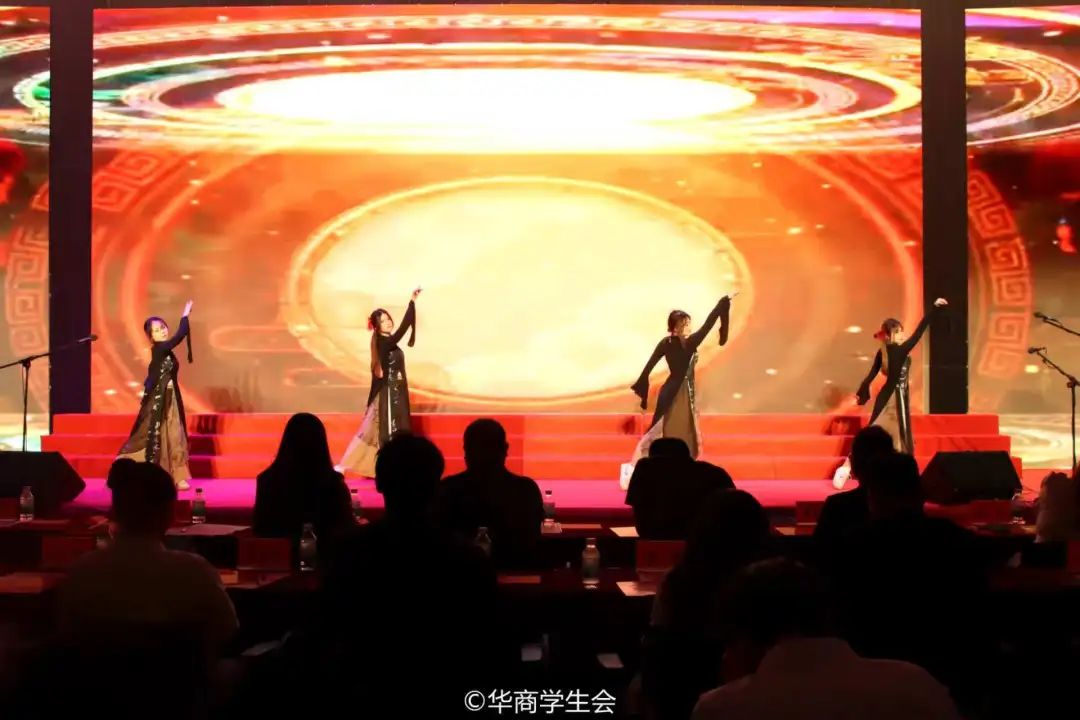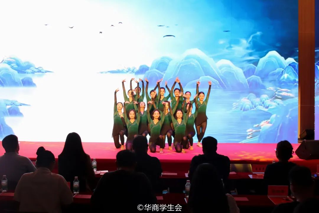 开场秀由校飞跃艺术团舞蹈队带来《象山水月》:月涌象山幻化千年水墨,廿载春潮足尖踏浪而歌,西江和鸣青衫揽尽星河,舞绘华商天地共赋长歌;