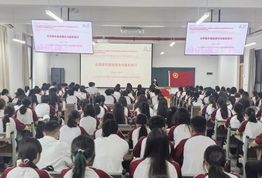 课程2:全运会、残特奥会概括与志愿者岗位介绍。4月19日,在肇庆校区16号楼104,我校团委干事何以立以《全运会、残特奥会概括与志愿者岗位介绍》为题,通过影像资料与数据图表生动展现两大赛事的发展脉络与社会价值,并详细介绍了全运会、残特奥会志愿者的种类及各自的岗位职责,让志愿者们系统地了解志愿服务工作的要求及志愿者的责任与使命,以期更加准确地匹配十五运会和残特奥会志愿服务相关工作需求。