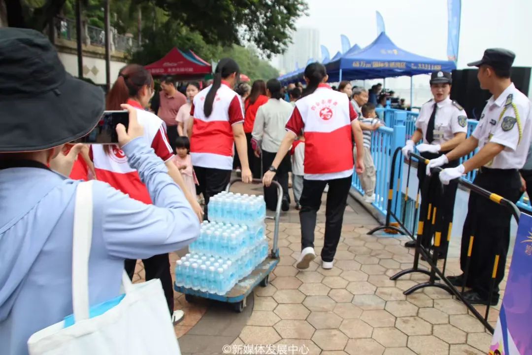 赛事筹备阶段,物资搬运任务繁重且关键,志愿者们毫不犹豫地挑起大梁。大量瓶装水是赛场必备物资。志愿者们有的推着满载的小推车,在赛场各处来回穿梭,稳稳把控方向,确保瓶装水安全送达指定地点;有的则双手抱起整箱的水,快步前行,争分夺秒,为的是让选手和工作人员能及时补充水分。他们深知,每一份物资的及时到位,都是对赛事顺利进行的有力保障,用辛勤的付出筑牢了赛事后勤的坚实根基。