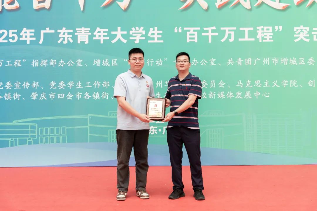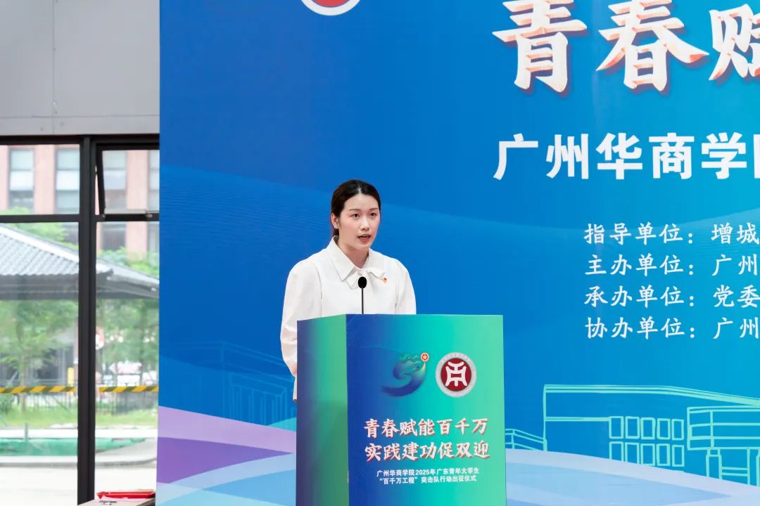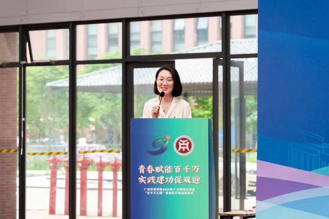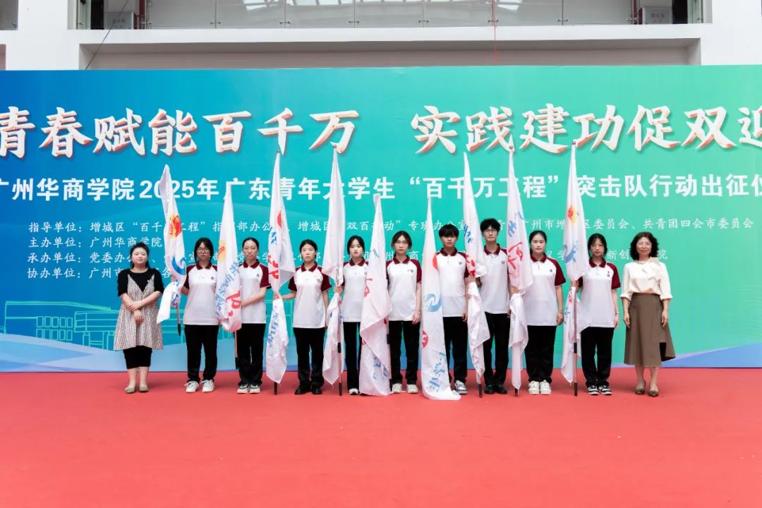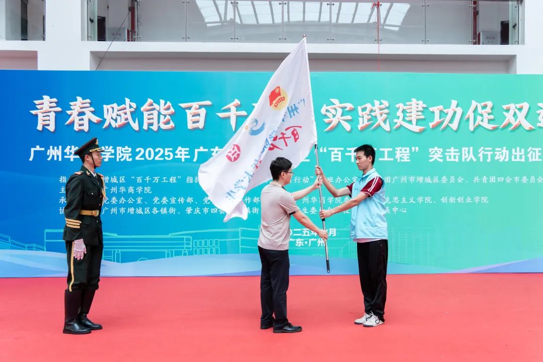 (团区委温振区副书记为2025年威廉希尔williamhill中文广东青年大学生“百千万工程”突击队授旗)