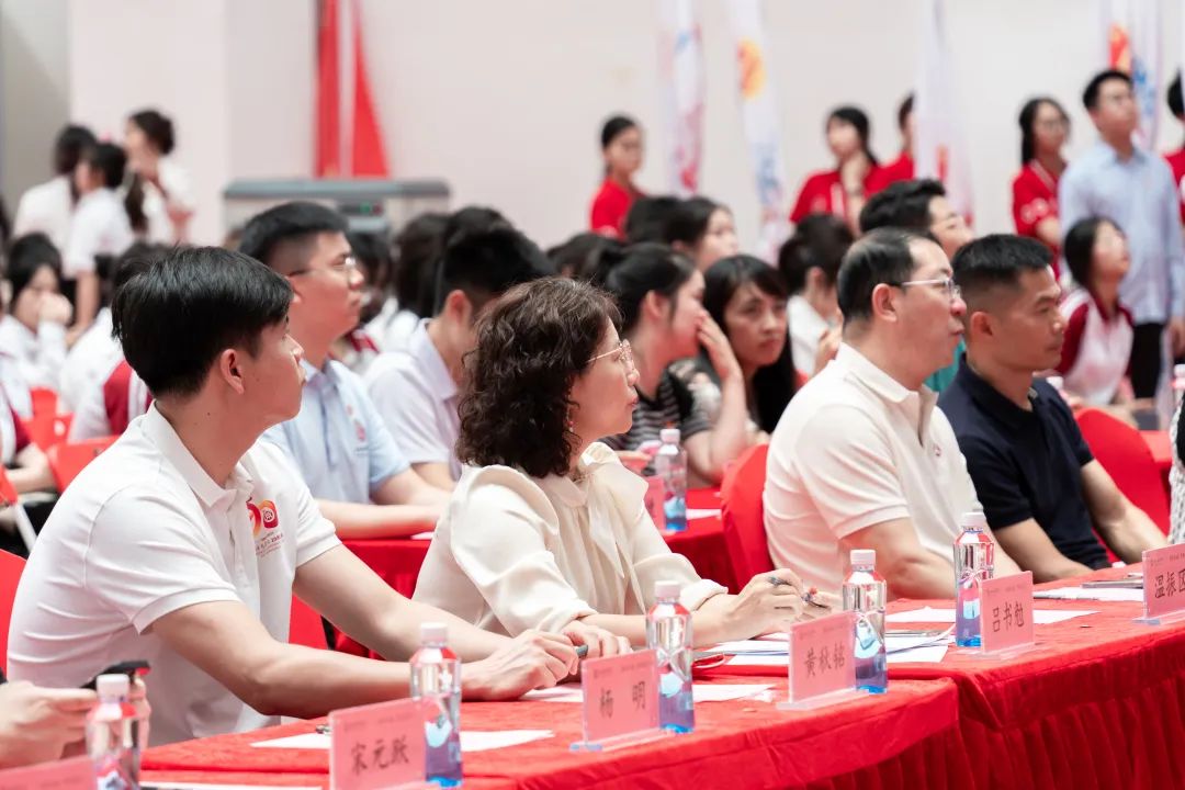 校党委书记陈玉欢教授,校党委副书记、纪委书记吕峻闽副校长,增城区团委温振区副书记,增城区“百千万工程”指挥办、双百组干部顾钻均,荔城街团委书记吴智伦,石滩镇团委陈婕妮副书记,增江街团工委负责人郭子豪,校党委委员、党委办公室吕书勉主任,校党委委员、党委宣传部刘苗部长,校纪委委员、纪委办公室黄秋铭主任,马克思主义学院院长杨明教授,就业创业处副处长、创新创业学院宋元跃副院长,学生处林月娥副处长,校团委专职团干、各二级学院团委书记、副书记、学生会指导老师,获奖师生代表,各实践队代表出席仪式。