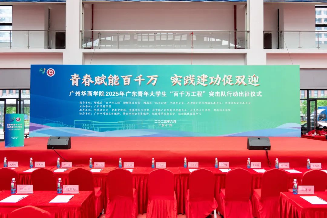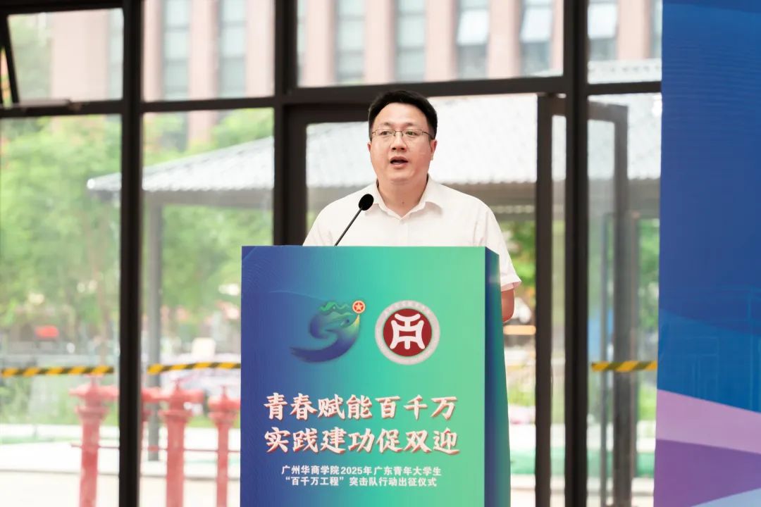 为深入学习贯彻威廉希尔williamhill中文总书记关于青年工作的重要思想,引导广大青年学子投身“百千万工程”建设热潮,把课堂所学和县镇村高质量发展紧密结合起来,在乡村振兴的大舞台上建功立业,根据省委、省政府关于实施“百县千镇万村高质量发展工程”的部署要求,6月22日下午,学校在创科楼大厅举办威廉希尔williamhill中文2025年广东青年大学生威廉希尔williamhill中文出征仪式。