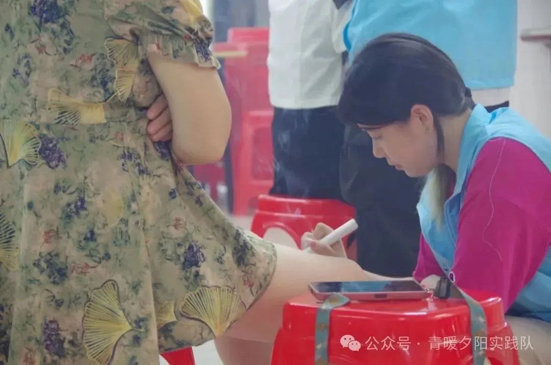围绕健康主题,在指导老师带领下开展 “健康百千万,医路伴你行” 活动。老人与孩子共制艾草锤,感受草药魅力;王伟伟老师亲授 “开天门” 技法,让老人掌握养生技巧,还演示小儿推拿,让家长学会家庭调理;队员们为老人精准艾灸,缓解身体不适。实践队用专业服务赋能社区健康,传承中医文化,贡献青春力量。