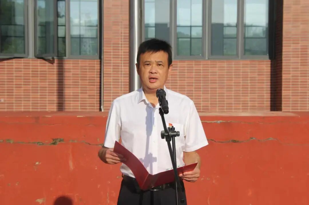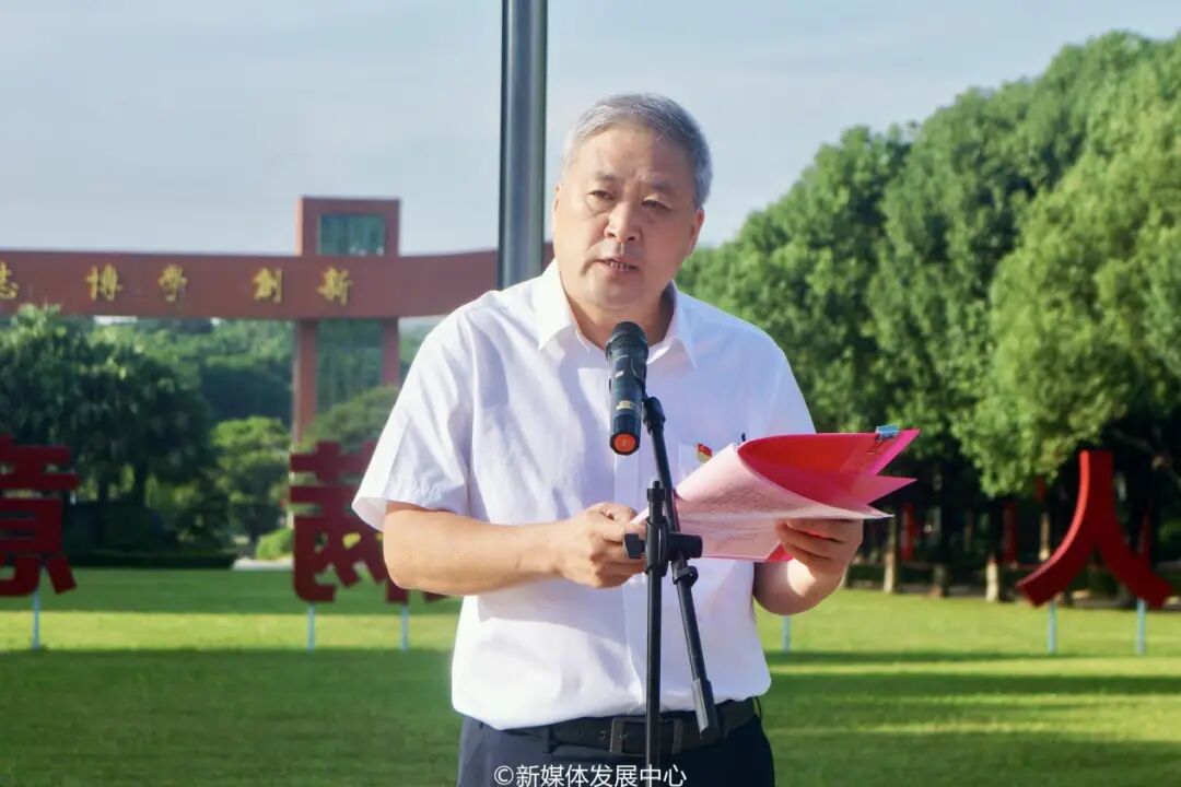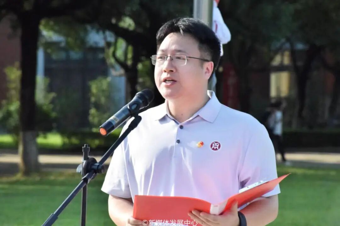 学校校长胡军教授代表学校向全体师生致以新学期的问候。胡校长在致辞中指出,9月3日我们将共同见证纪念中国人民抗日战争暨世界反法西斯战争胜利80周年盛大阅兵。80年前,中华儿女以血肉之躯筑起民族脊梁;80年后,站在新时代的历史坐标上,回望烽火硝烟,更应该深切体会到,和平之珍贵、发展之不易。他寄语全体师生:第一,坚定信念,传承精神,做胸怀家国的担当者。第二,勤学修德,惟实励新,做优良学风的践行者。第三,修身明礼,知行合一,做知行合一的实干者和全面发展的示范者。第四,潜心育人,恪尽职守,做学生成长的护航者。希望全体师生将国旗下的誓言转化为脚踏实地的行动,以更加坚定的信念和更加扎实的作风,迎接学校合格评估和二十周年校庆。让我们携手共进,为实现 “创百年名校,育华夏英才” 的办学愿景注入新的力量!