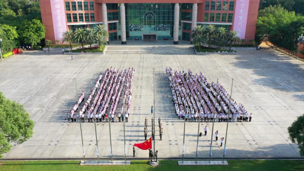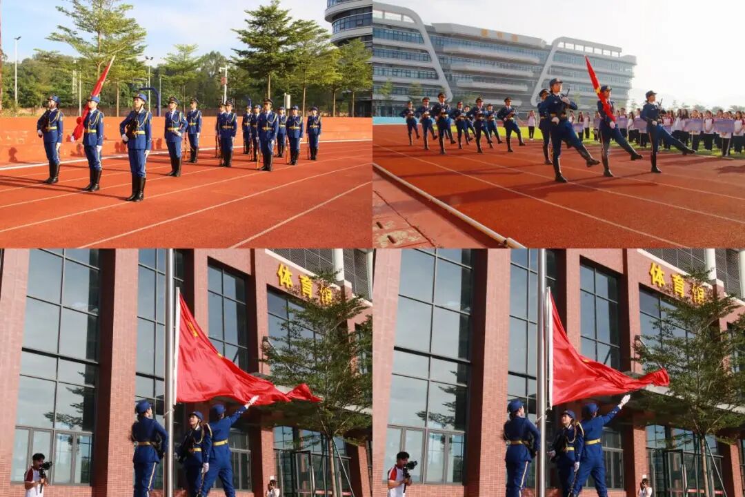 学校校长胡军教授,校党委书记陈玉欢教授,校党委副书记、纪委书记、副校长吕峻闽教授,校党委委员、副校长许娜副教授,肇庆校区党委书记苏宁,校纪委委员、校长助理覃少冰主任,校党委委员、党委办公室吕书勉主任,校党委委员、党委宣传部刘苗部长,党委保卫部部长杨燕平,党委教师工作部庞革英部长,党委学生工作部黄国富部长,校团委陈刚书记,二级党委书记、副书记、学工负责人、团委书记、 副书记、学生会指导老师、辅导员及学生代表近3000人参加本次升旗仪式。双校区仪式分别由校长助理覃少冰主任和校团委陈刚书记主持。