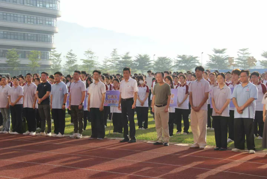 肇庆校区党委书记苏宁讲话。他寄语同学们:第一,铭记历史,勇担青春使命。继承和弘扬伟大抗战精神,以史为鉴、面向未来,珍爱和平、维护和平,为实现中华民族伟大复兴不懈奋斗。第二,数字赋能,创新育人成效。希望同学们积极参加“挑战杯”等学科竞赛,在新时代赛道上跑出青春加速度。第三,挺膺担当,争做有为青年。希望各位同学夯实专业基础,发挥专业优势,在社会实践中锤炼品格,在志愿服务中奉献青春。