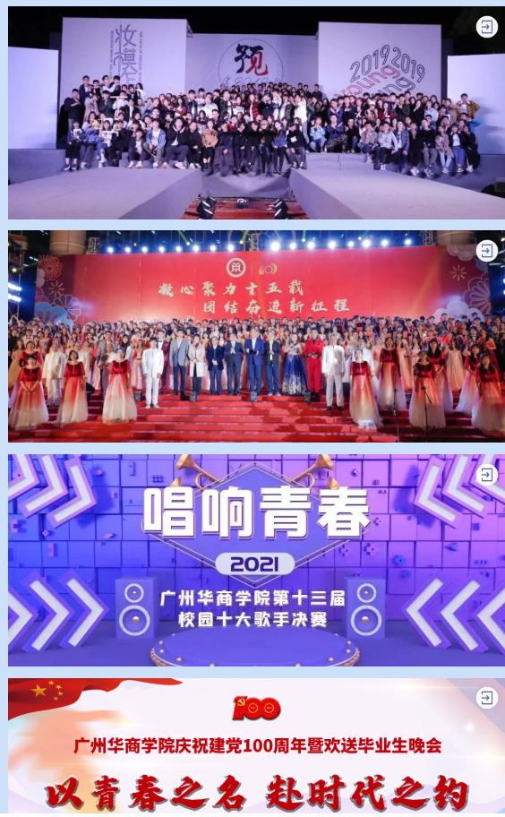 校学生会现设有办公室、媒体宣传部、生活权益部、文体部、学习实践部、国旗护卫队六个部门汇集各路人才共同关心学校的点点滴滴,记录每一个精彩瞬间,给华商学子提供无微不至的帮助。